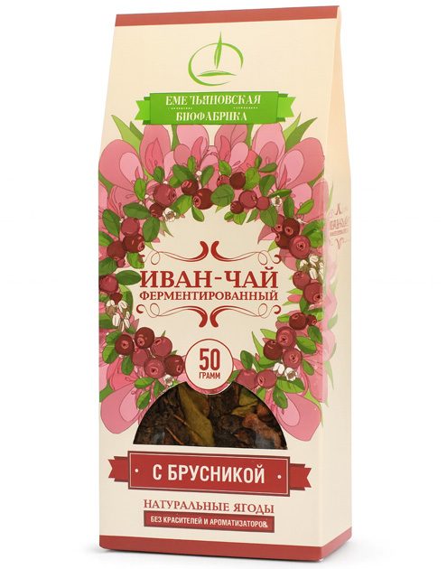 Состав: листья иван-чая (кипрей узколистный, Epilobium angustifolium L.) ферментированные, ягоды брусники сушёные, листья брусники.
